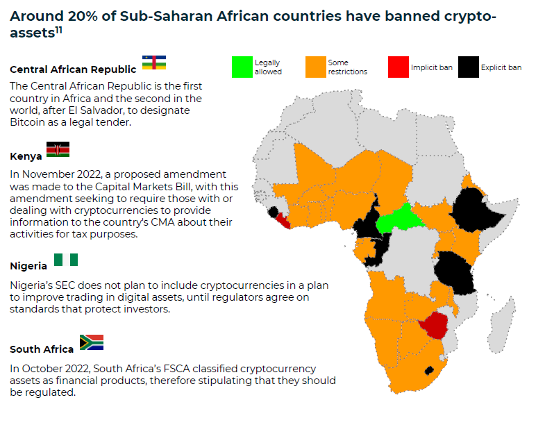 Figure 4: Majority of regulators across Africa have some restrictions on crypto-assets