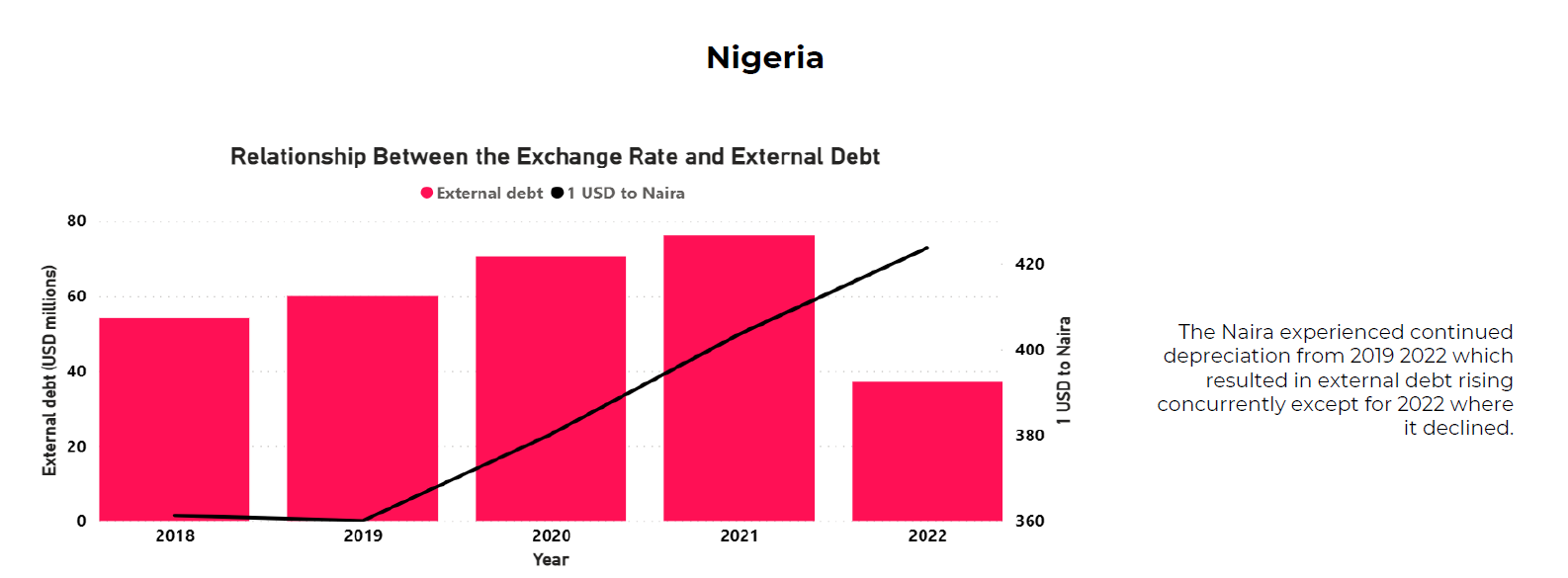 Figure 2: Relationship between the Exchange Rate and External Debt in Focus Countries – South Africa, Nigeria, Kenya