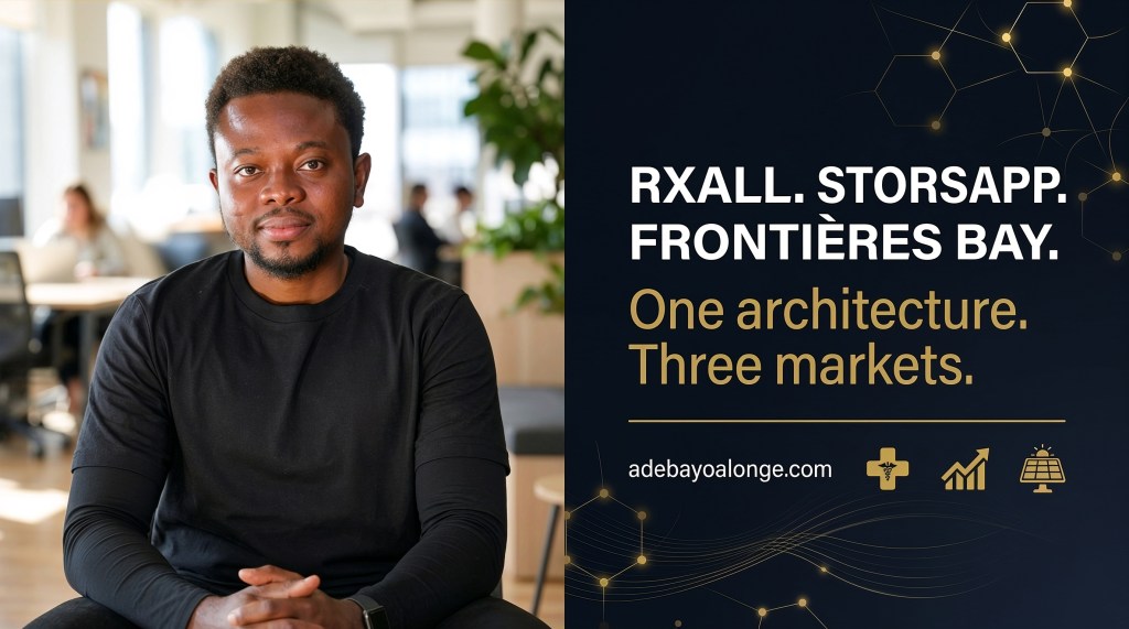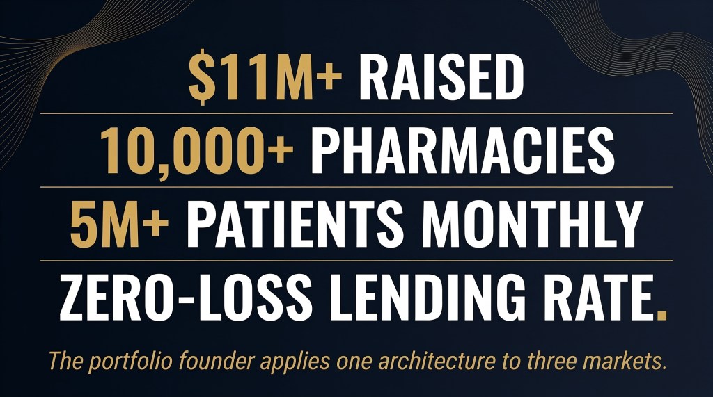 Fake drugs, financial exclusion, and energy poverty in healthcare are the same problem wearing different masks. The portfolio founder does not chase three opportunities. The portfolio founder applies one architecture to three markets.
