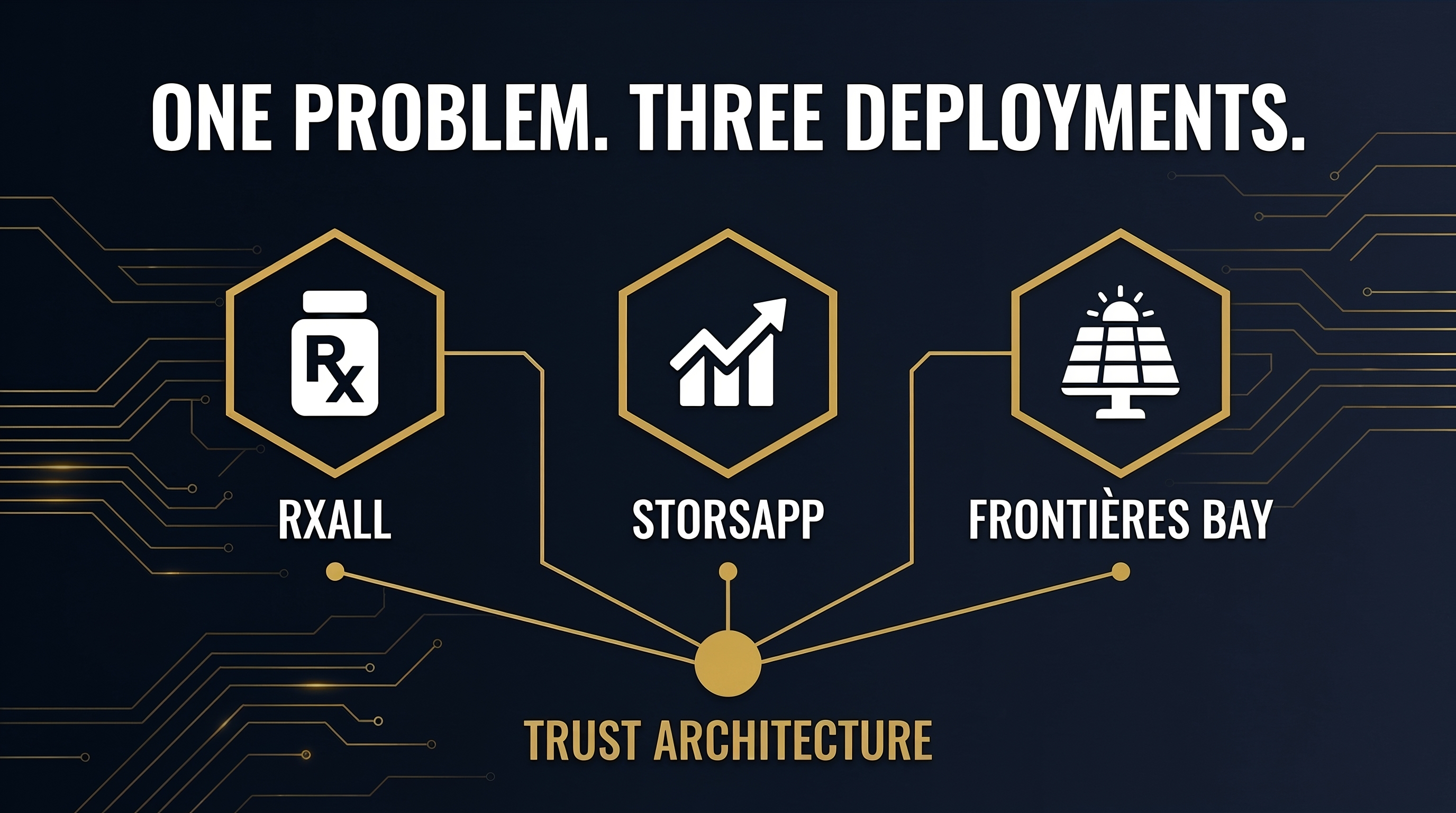 Because the logic assumes these are three separate problems. They are not. Counterfeit medicines, financial exclusion, and energy poverty in healthcare are the same problem wearing different masks. They are all failures of trust at the systems level — places where institutions broke down and left people exposed.